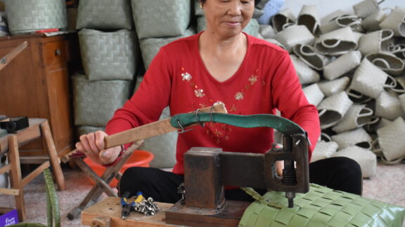 Onze manden en tassen worden zorgvuldig met de hand gevlochten, waardoor plastic een tweede leven krijgt en restmaterialen worden omgevormd tot iets moois, duurzaams en unieks. Elk product vertelt een verhaal van ambacht en toewijding. De meeste handwerkers zijn vrouwen die vanuit huis werken. Als het werk op het land is gedaan of als de kinderen naar school zijn, worden extra inkomsten gegenereerd door Handed By manden te vlechten.