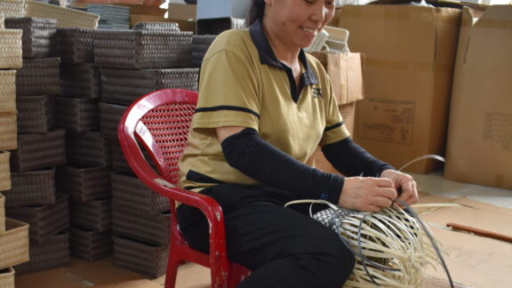De meeste vlechters verdienen hun geld op het land in de rijstvelden of rondom de kleine boerderijtjes met hun koeien, pluimvee en fruitteelt. Ze wonen samen met hun kinderen, ouders en grootouders in een huis. Als het werk op het land is gedaan, vlechten de handwerkers de manden. Als de manden klaar zijn, worden ze teruggebracht naar het dorp. Daar worden de manden gecontroleerd, schoongemaakt en afgewerkt in een centrale ruimte. Vervolgens worden ze vervoerd naar het centrale magazijn in de stad, waar ze worden ingepakt en verscheept naar Nederland.